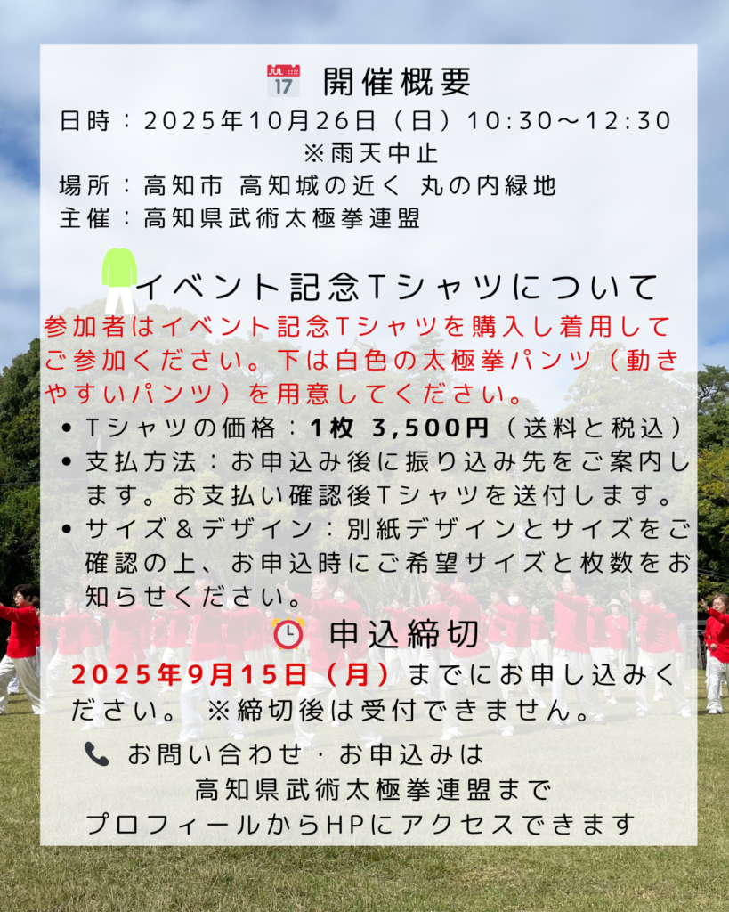🔗 [お問い合わせはこちら]kochi.wushu.taikyokuken★gmail.com (★のところに@を入れてください)