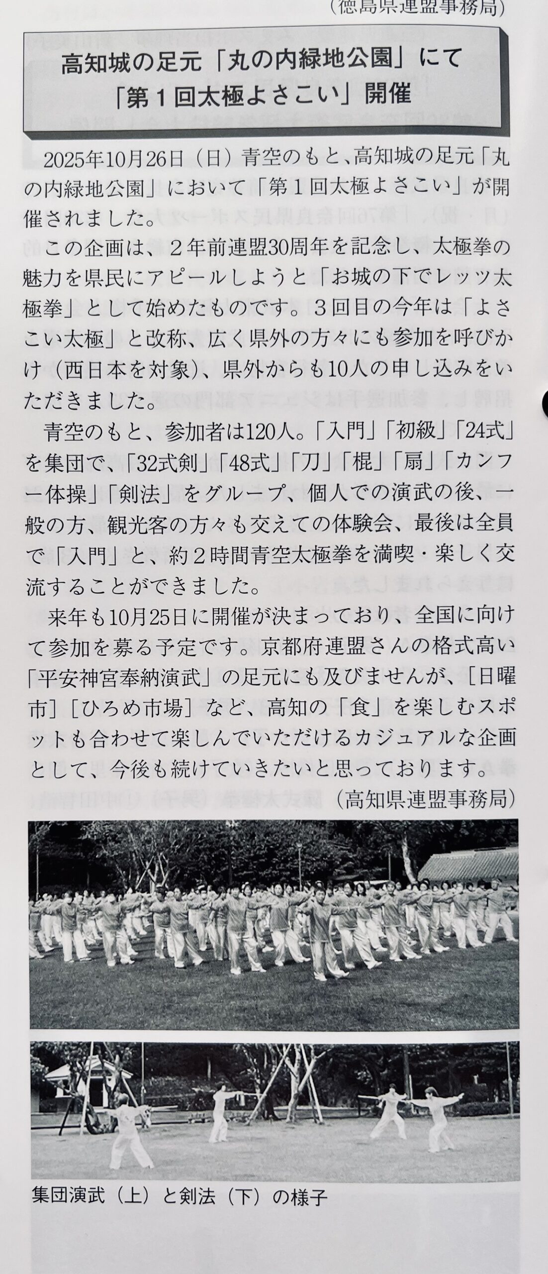 日本武術太極拳連盟発行の12月号に「第1回太極よさこい」の記事が掲載されました! 日本武術太極拳連盟発行の12月号… リフレッシュ, 健康, 太極よさこい, 太極拳, 太極拳好きと繋がりたい, 芝生, 集団演武, 高知, 高知イベント, 高知城