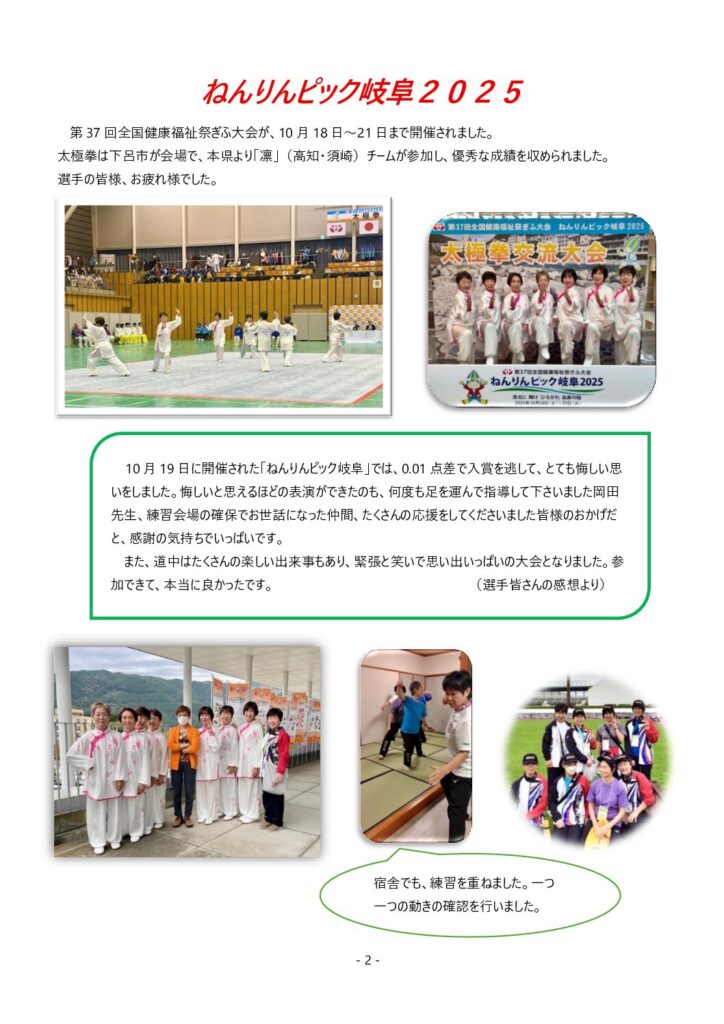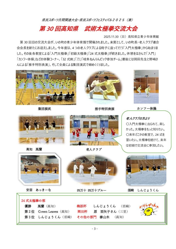 高知県武術太極拳連盟は高知県内で4つの団体が加盟し、武術太極拳の普及・広報を行っている団体です。
